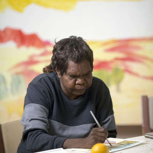Iltja Ntjarra has a special focus on supporting the ‘Hermannsburg School’ style watercolour artists, who continue to paint in the tradition of their grandfather and relative, Albert Namatjira, arguably one of Australia’s most famous artists of the 20th century. Albert Namatjira taught his children to follow in his unique style, who have since passed this knowledge on to their children, which has resonated in a legacy of watercolour artists in the Central Desert region. By continuing his legacy, these artists sustain an important piece of living history.