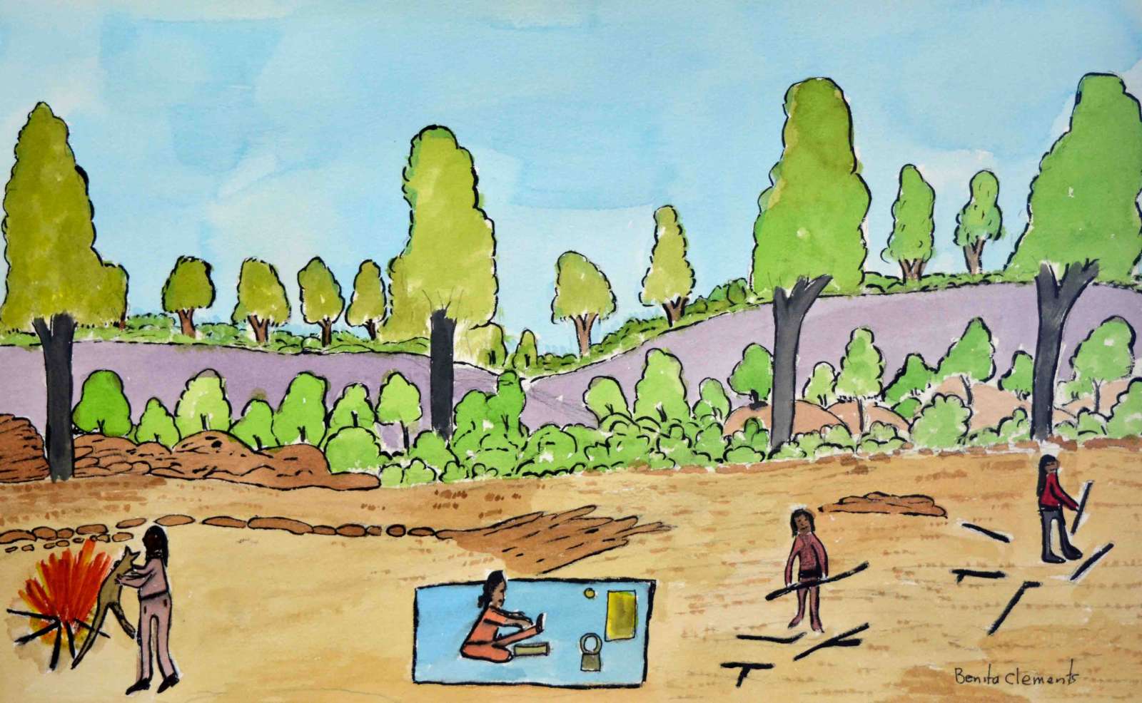 land/place presents a selection of watercolours by Benita Clements and Mervyn Rubuntja.