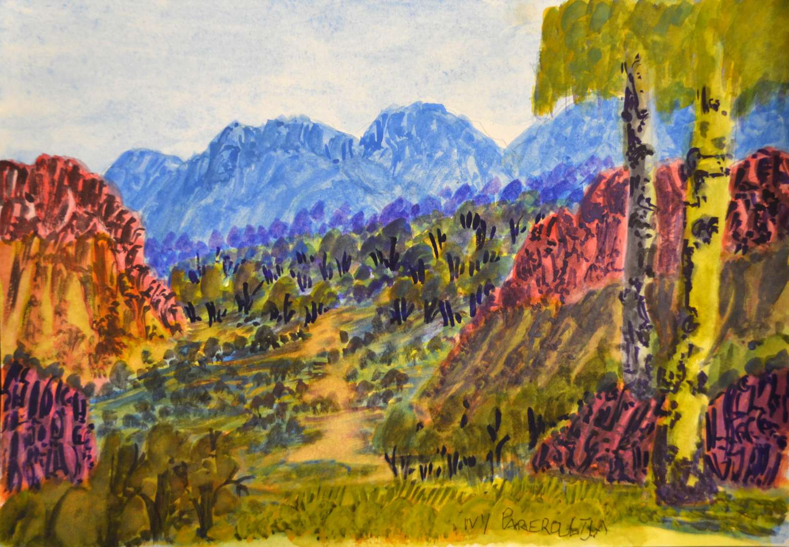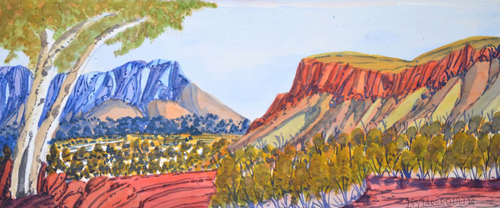 NEW watercolour paintings inspired by recent bush trips to Haast Bluff and the East MacDonnell Ranges. Artists participating: Peter Tjutjatja Taylor, Rienhold Inkamala, Hilary Wirri, Kevin Namatjira, Hubert Pareroultja, Douglas Kwarlpe Abbott and Mervyn Rubuntja. The Exhibition runs from October 10 to October 31. Don’t miss out!