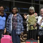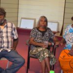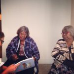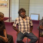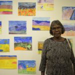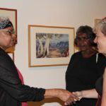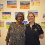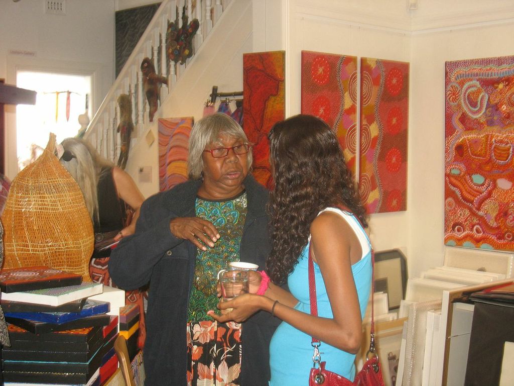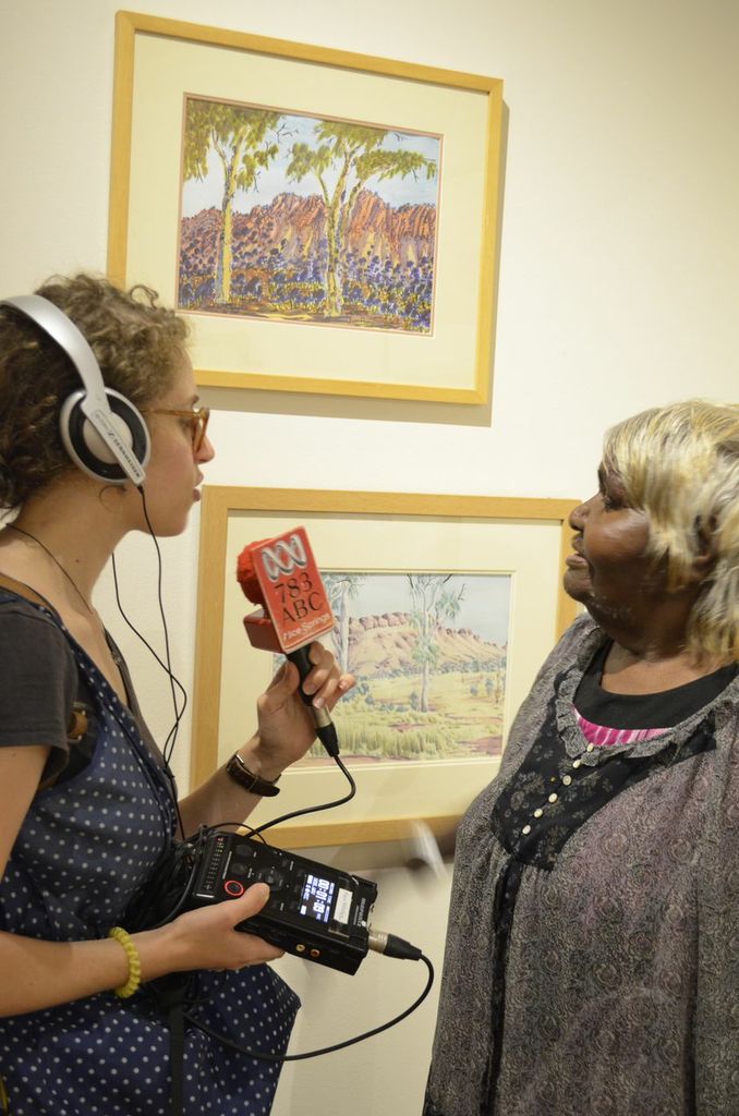 Lenie Namatjira and Gloria Pannka recently travelled to Sydney and Geelong with arts support worker Marisa Maher in order to open exhibitions of work by Ngurratjuta Many Hands artists and to lead workshops on painting watercolours in the Hermannsburg style.