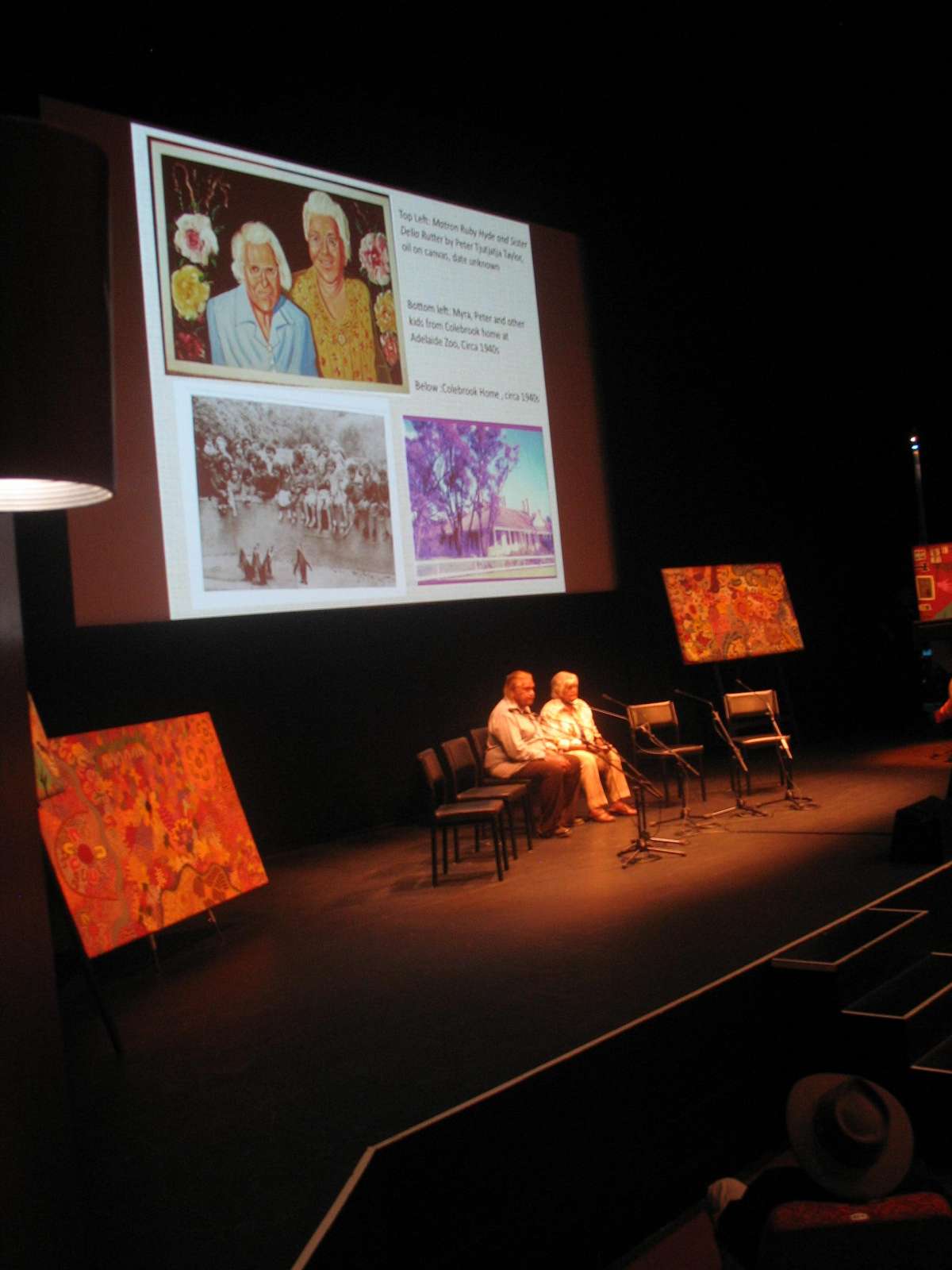 Pictures 19- 24: Lenie and Gloria at the Hills Beyond Hermannsburg exhibition at the AGNSW with paintings by them and members of their families.
