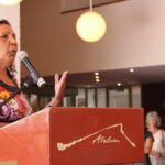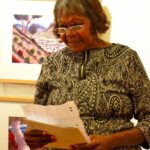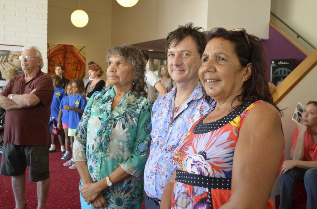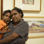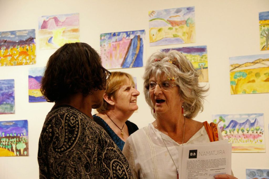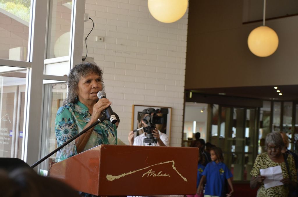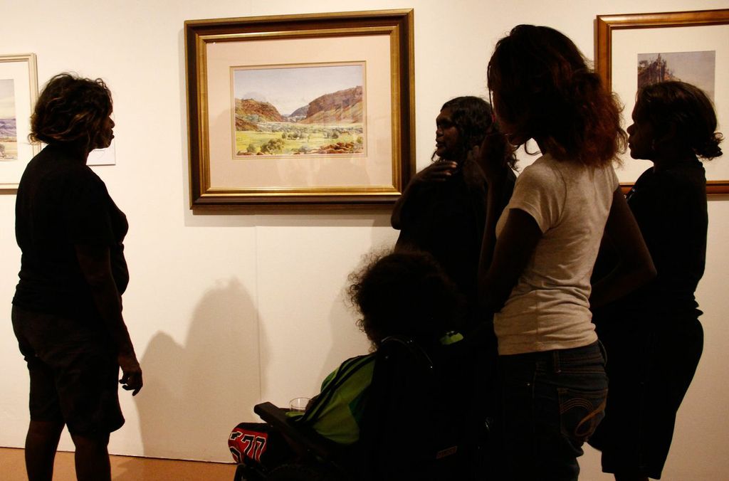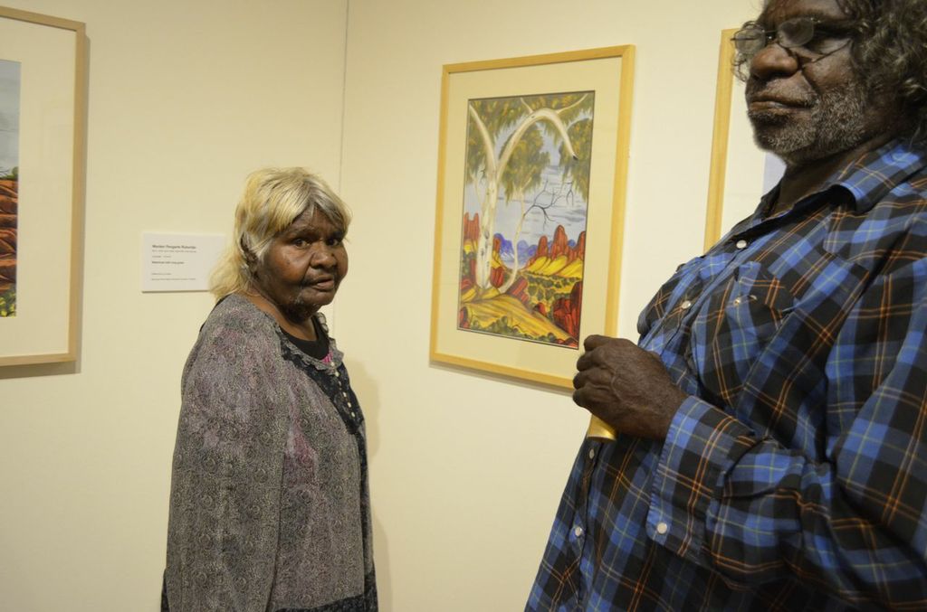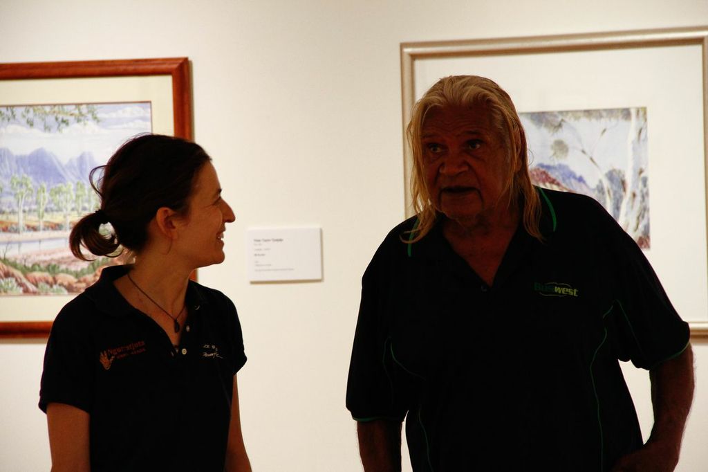 Five Generations: the strength of Albert Namatjira’s legacy opened on Saturday the 1st of March, with great success. The exhibition was opened by Member for Namatjira Alison Anderson MLA, with speeches by artist Gloria Pannka, Ntaria School students and scholar Alison French. The opening also marked the donation of Albert Namatjira’s last ever painting to Araluen Art Centre by owner Judith King, who presented the painting to Albert’s granddaughter Lenie Namatjira.