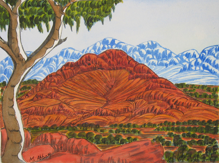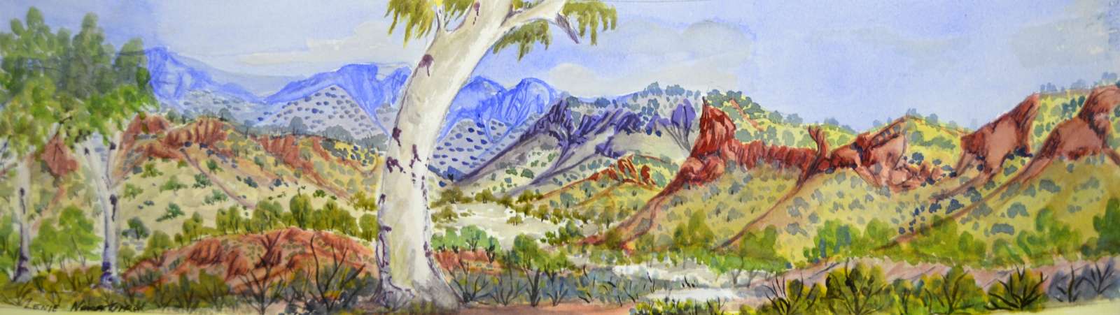 -Lenie Namatjira /26 x 74 cm Watercolour with board backing/West MacDonnell Ranges, NT, near Mt Liebig