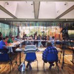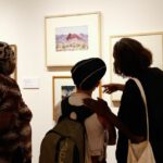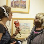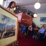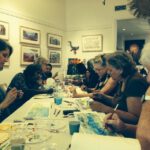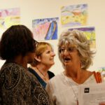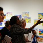 Pictures 25- 33: Lenie and Gloria leading a Q&A session, speaking to a journalist, and leading a watercolour workshop.