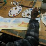 They also visited the Art Gallery of New South Wales, where an exhibition of Hermannsburg School watercolours is currently being held, entitled ‘the Hills Beyond Hermannsburg’. Lenie and Gloria led a question and answer session followed by several watercolour workshops, which were very successful.