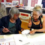 From Geelong, they travelled to Sydney. Tali Gallery is holding an exhibition of work by Many Hands artists, and Lenie and Gloria opened the exhibition and led a watercolour workshop.