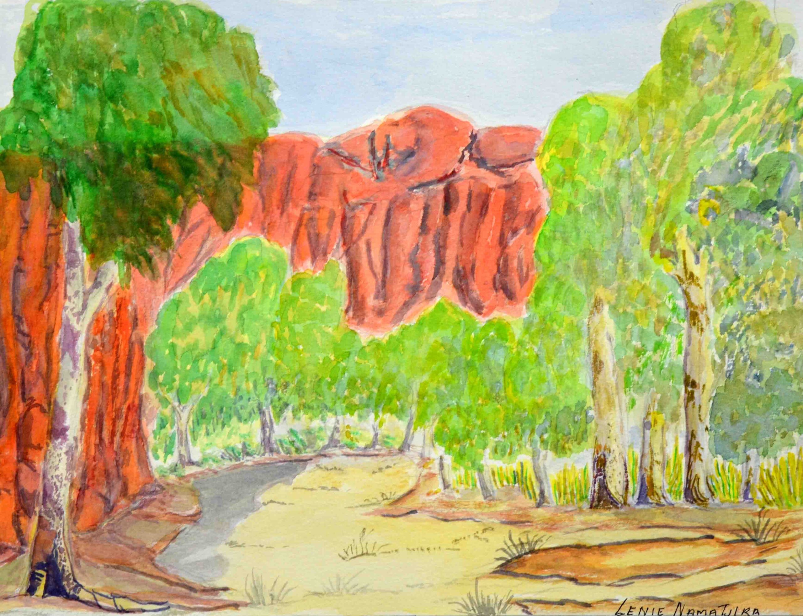 Artwork context navigation Shop > Artwork 6 of 6 $560.00 1 in stock Tjoritja (West MacDonnell Ranges) , NT quantity Add to cart Tjoritja (West MacDonnell Ranges) , NT Catalog no. : 237-17 Artist name : Lenie Namatjira (6 artworks) Category : Size : 26 x 36 cm Watercolour Paper Status : In stock Inspired by images from the South Australian Museum, SA