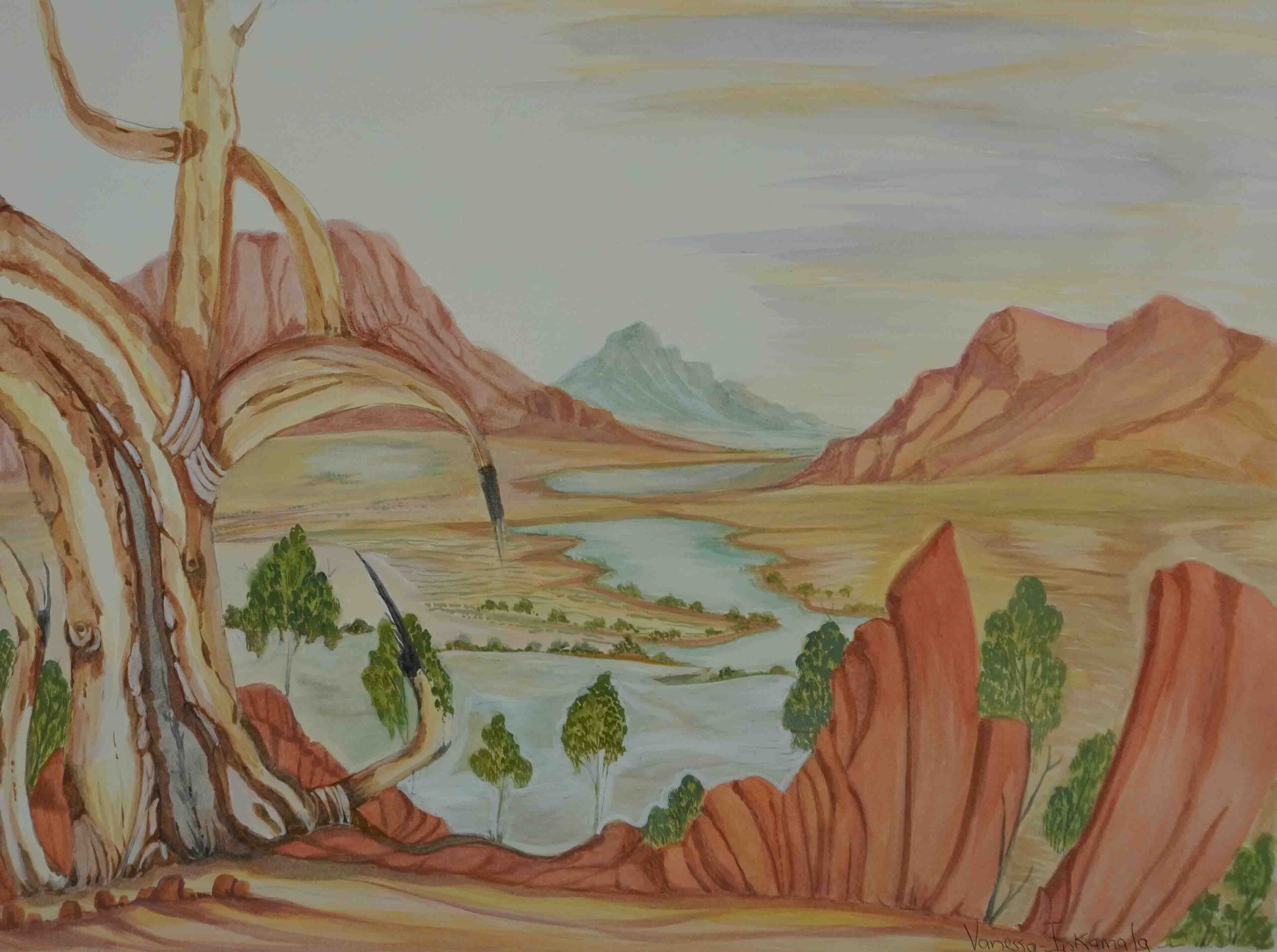 $1,700.00 1 in stock Tjoritja(West MacDonnell Ranges),NT quantity Add to cart Tjoritja(West MacDonnell Ranges),NT Catalog no. : 291-24 Artist name : Vanessa Inkamala (11 artworks) Category : Established artists Size : 53 x 73cm Medium : watercolour on paper Status : In stock
