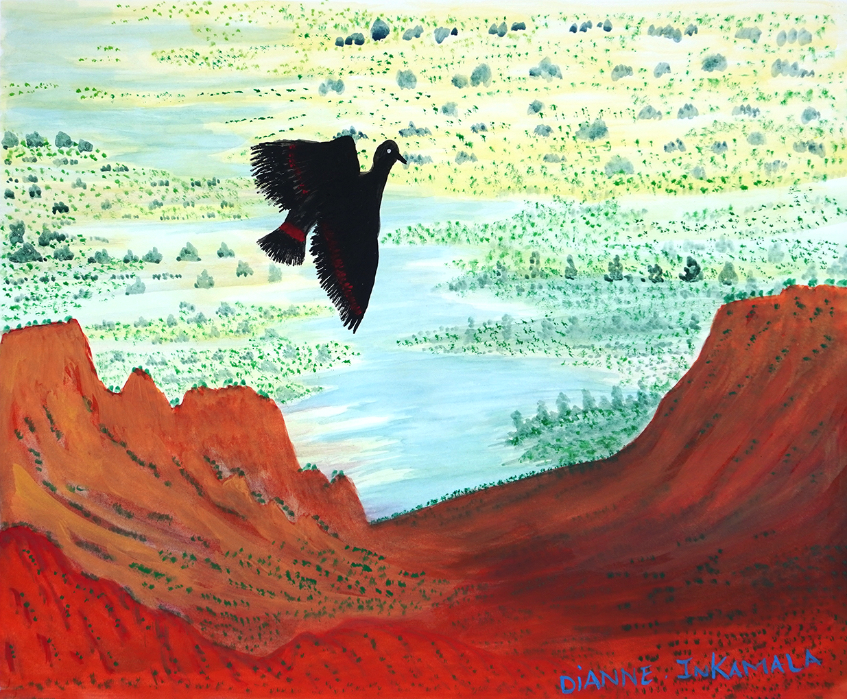Artwork context navigation Shop > Emerging artists > Artwork 24 of 68 $685.00 1 in stock Tjoritja (West MacDonnell Ranges), NT quantity Add to cart Tjoritja (West MacDonnell Ranges), NT Catalog no. : 307-25 Artist name : Dianne Inkamala (13 artworks) Category : Emerging artists Size : 48 x 57 cm Medium : watercolour on paper Status : In stock 2 Mile waterhole, black cockatoo