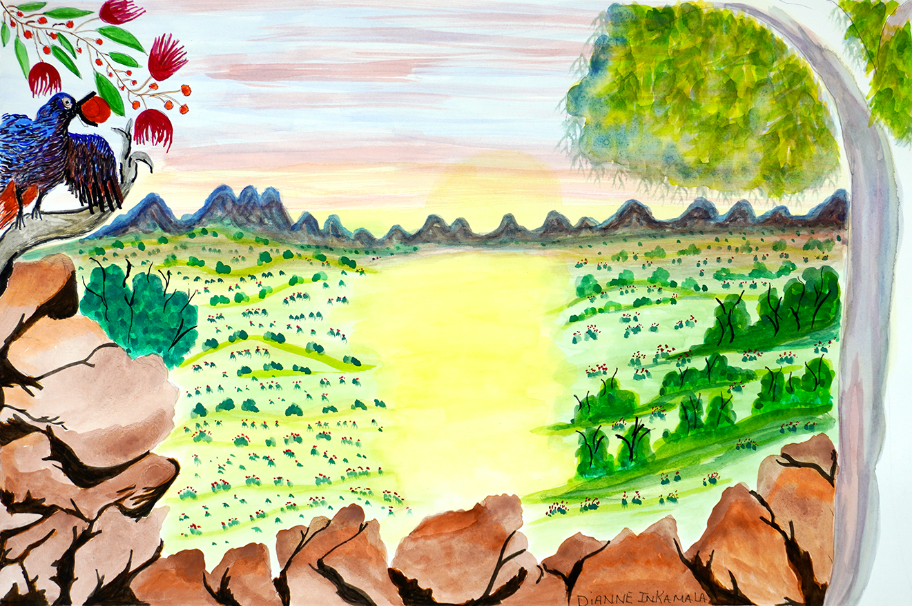 $555.00 1 in stock Mount Sonder West MacDonnell Ranges quantity Add to cart Mount Sonder West MacDonnell Ranges Catalog no. : 376-25 Artist name : Dianne Inkamala (13 artworks) Category : Emerging artists Size : 39 x 57 cm Medium : watercolour on paper Status : In stock