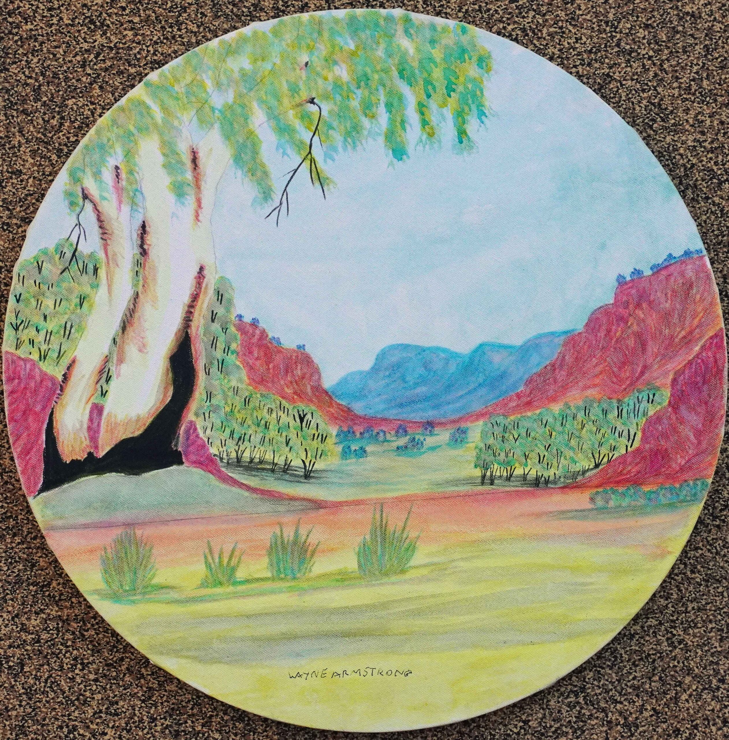 Artwork context navigation Shop > Emerging artists > Artwork 60 of 68 $290.00 1 in stock Tjoritja (West MacDonnell Ranges), NT quantity Add to cart Tjoritja (West MacDonnell Ranges), NT Catalog no. : 421-22 Artist name : Wayne Armstrong (8 artworks) Category : Emerging artists Size : 40 cm diametre Medium : Watercolour on canvas Status : In stock