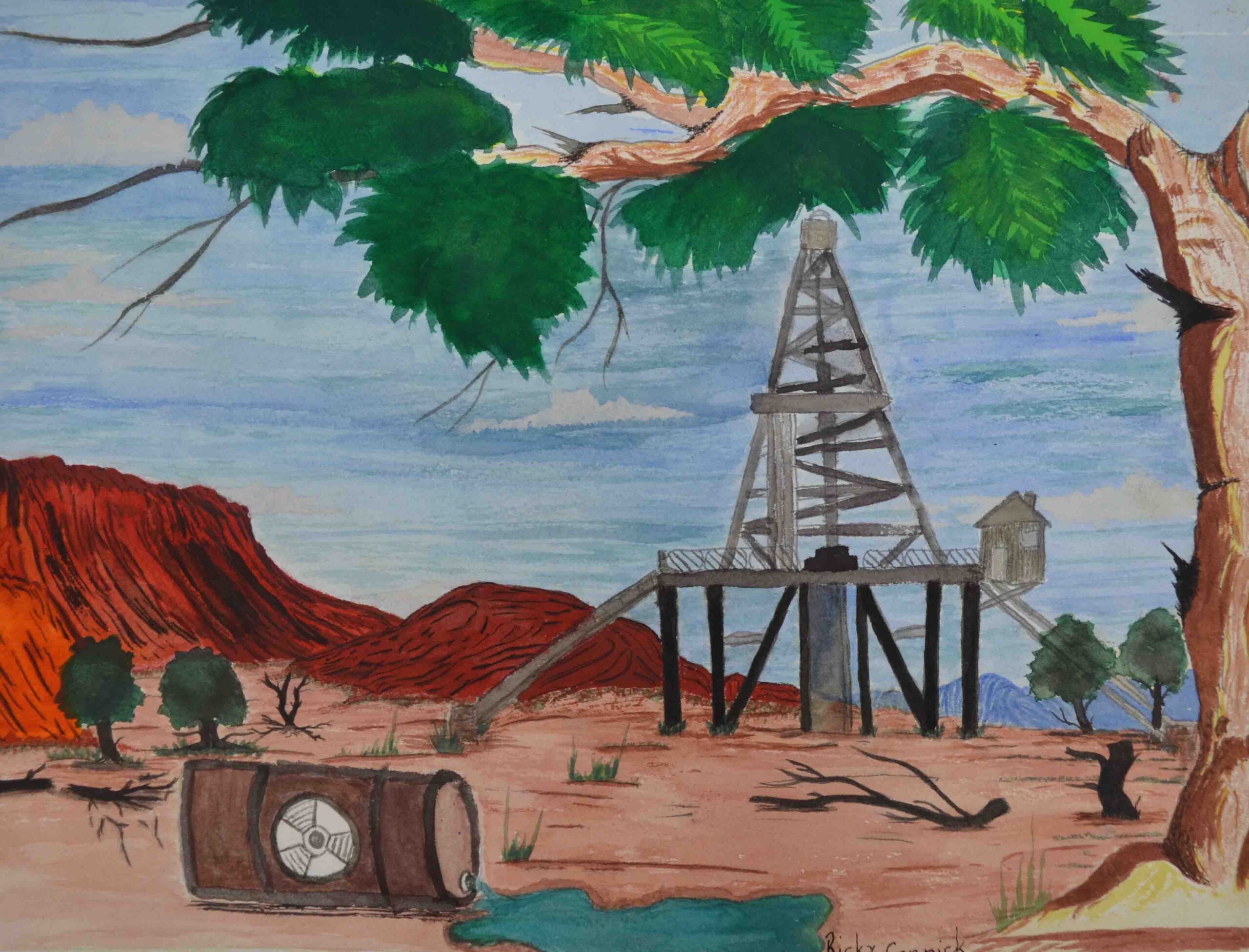 Artwork context navigation Shop > Emerging artists > Artwork 53 of 68 $290.00 1 in stock Gaz Towers and Oil Spill in my country quantity Add to cart Gaz Towers and Oil Spill in my country Catalog no. : 469-16 Artist name : Ricky Connick (8 artworks) Category : Emerging artists Size : 26 x 36 cm Watercolour Paper Status : In stock Studio studies with artist in residence – Tony Albert